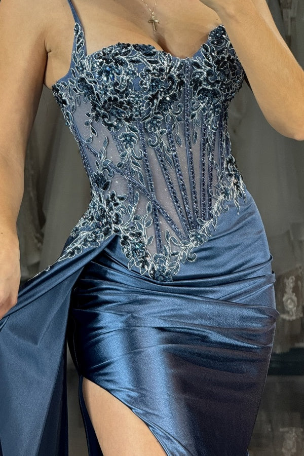 Descripción: Disfrute del máximo lujo con nuestro vestido WU1191 - Vestido tubo brillante y con brillo. El escote corazón y los apliques de flores 3D le dan un toque romántico, mientras que la abertura lateral alta y la cola crean un efecto dramático. Con tirantes finos y diseño plisado, este vestido es perfecto para eventos formales y cócteles de noche.