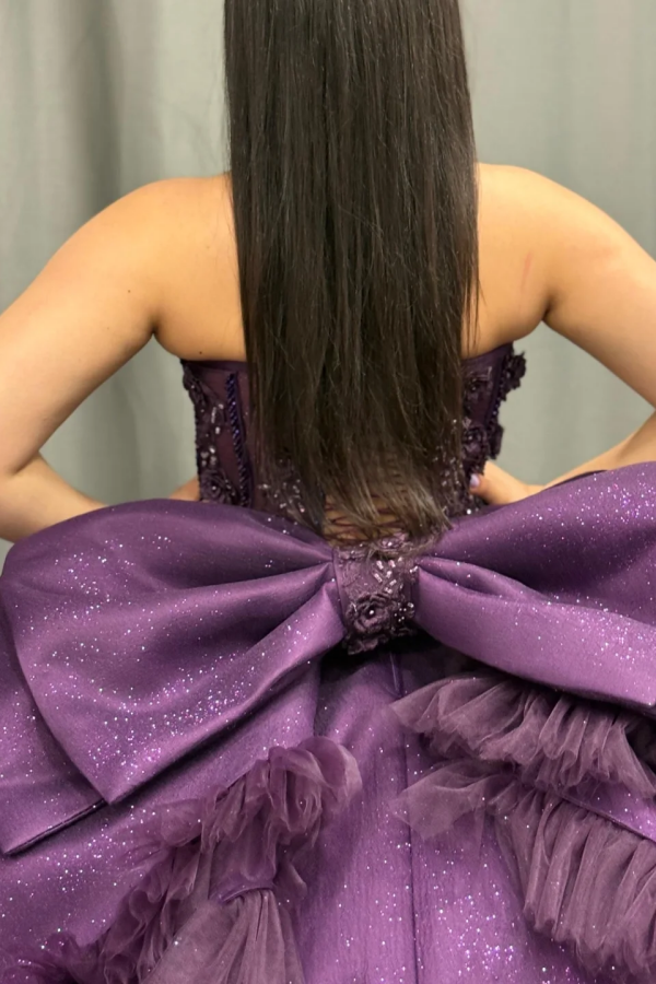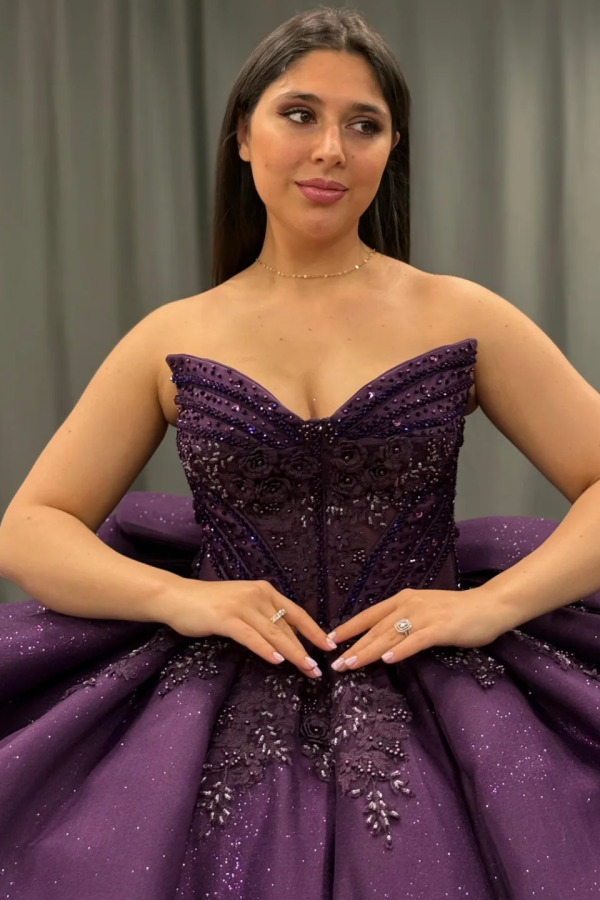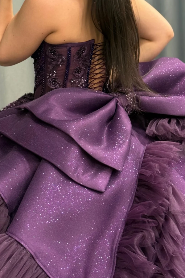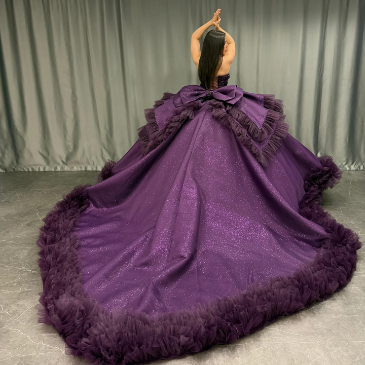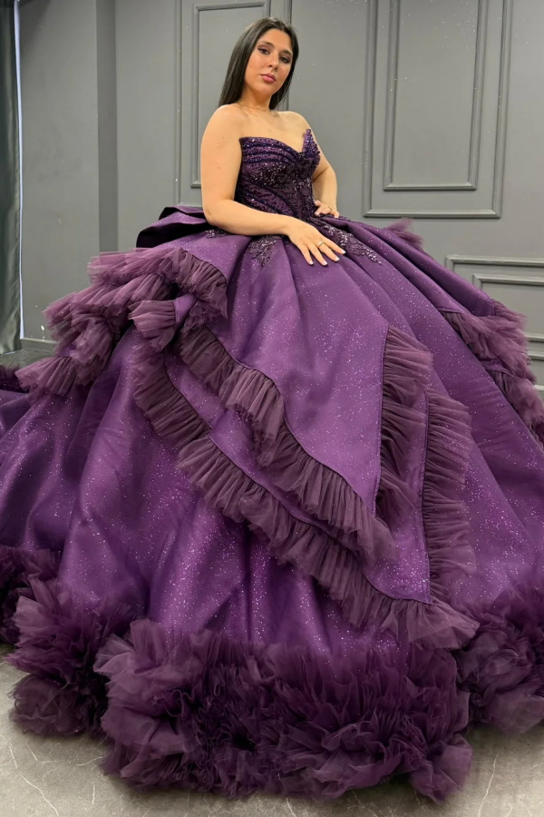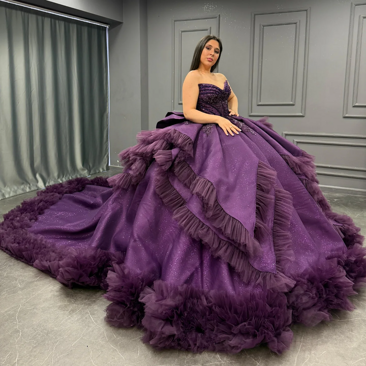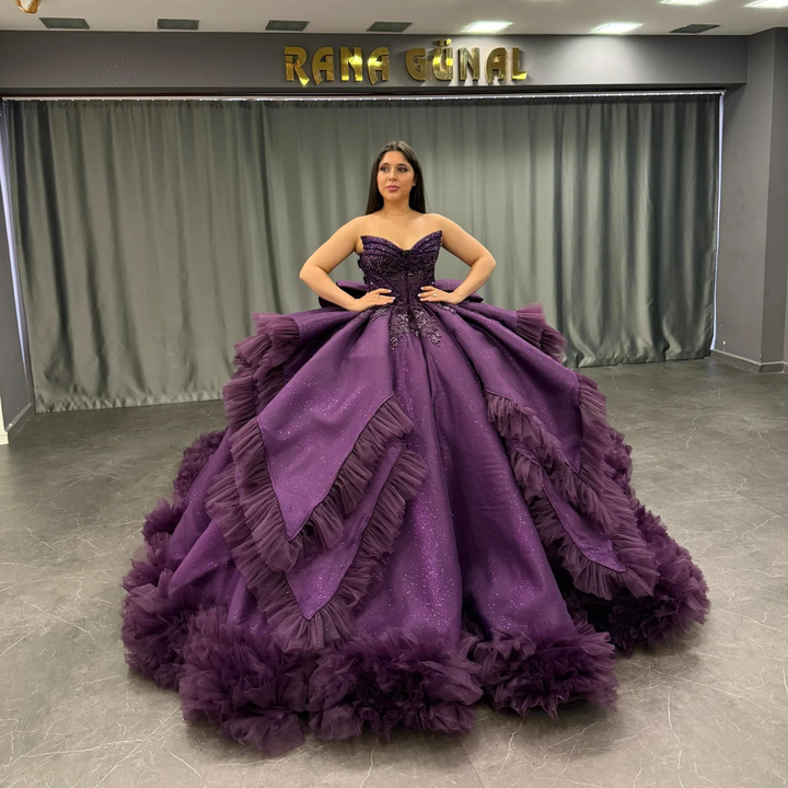 WQ1450 - Vestido de fiesta sin tirantes, sin mangas, con cuentas, volantes, lentejuelas, tul, capas, tul brillante, vestido de quinceañera, vestido de fiesta de cumpleaños, vestido formal de noche para dulces 16