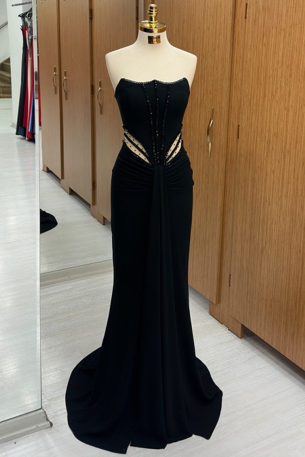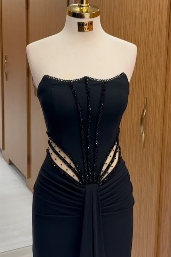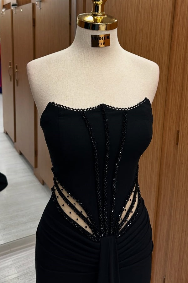 Description: This sophisticated sheath gown features an elegant boat neckline that gracefully frames the collarbone and shoulders. The sleeveless design offers refined simplicity while strategic pleating creates dimensional texture and enhances the silhouette. Meticulous beadwork catches and reflects light with subtle brilliance, complemented by illusion elements that add contemporary allure and visual intrigue. The floor-length design ensures a dramatic profile, making this piece exceptionally versatile for formal occasions from proms and evening galas to cocktail events where distinguished elegance is essential.