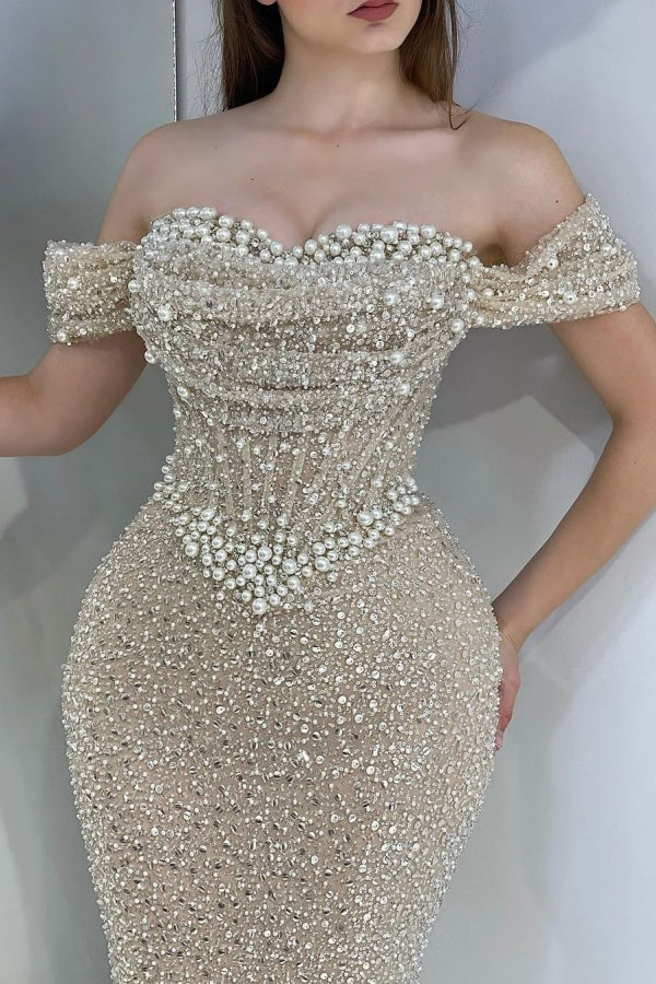 Mermaid Off Shoulder Sequins Beaded Pearl Prom Party Dress WU1181