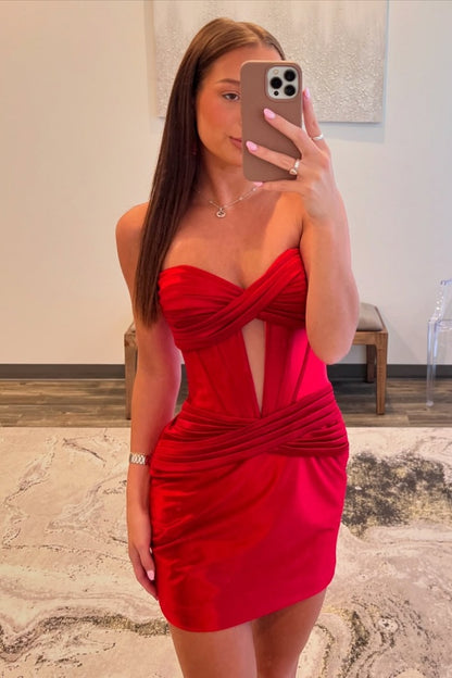 Sheath Strapless Pleated Open Back Homecoming Dress WH1067