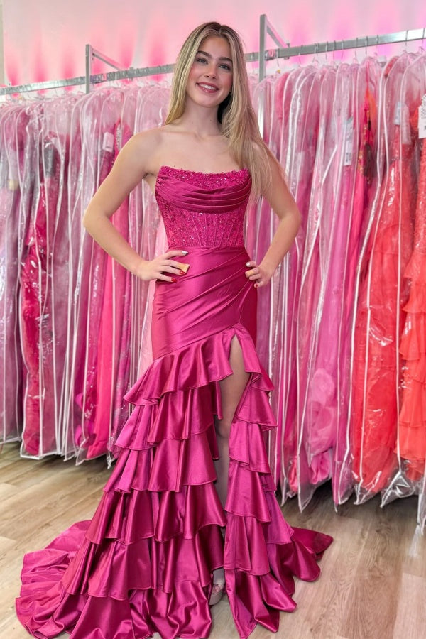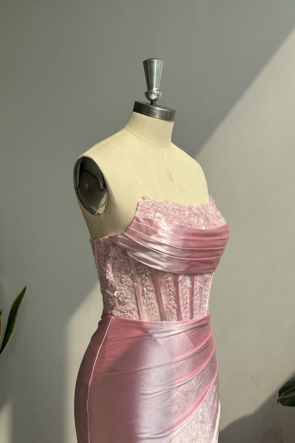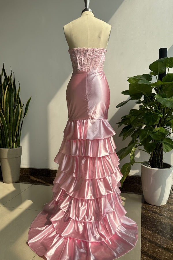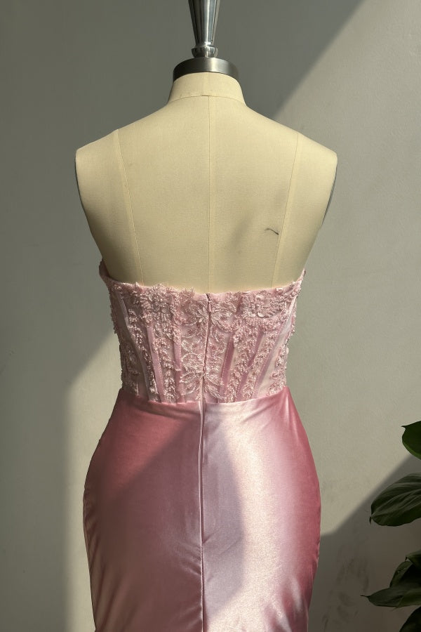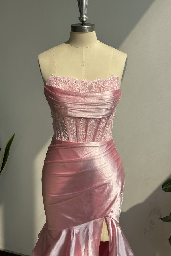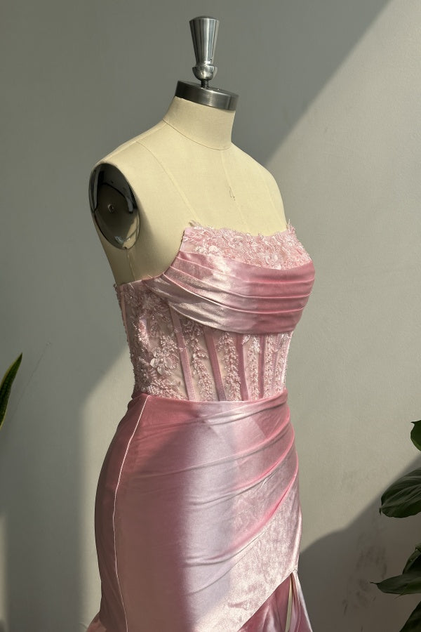 Strapless Appliques High Side Slit and Train Prom Dress WU1024