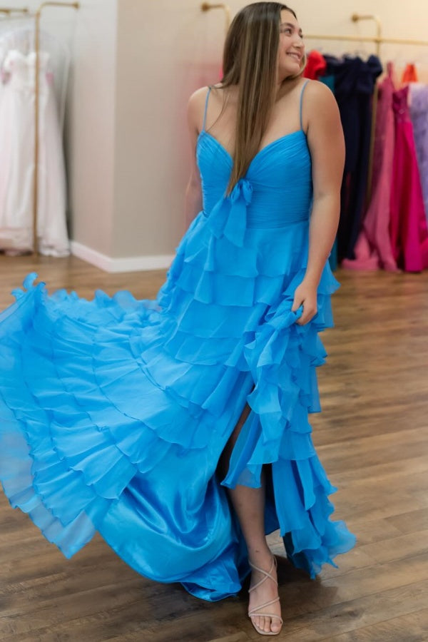 A-Line Strapless Chiffon Tiered Prom Dress WU1042