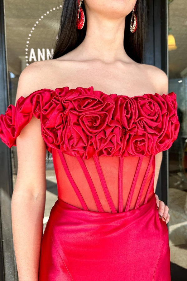 Off Shoulder Sleeveless 3D Flowers High Side Slit Prom Dress WU1099