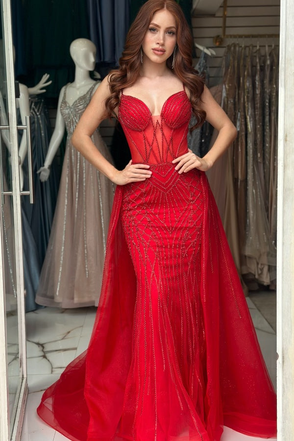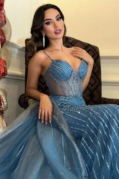 Mermaid Strapless Spaghetti Straps Sleeveless Sequins Prom Dress WU1182