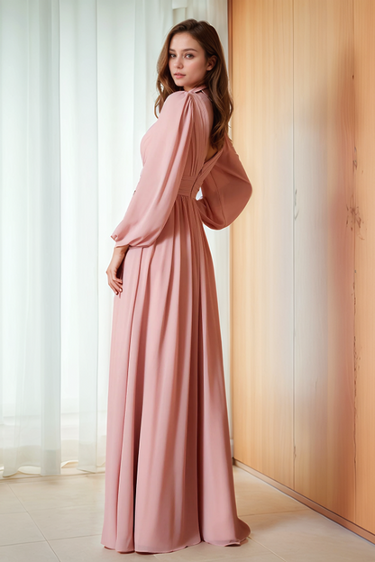 Description: Indulge in the ultimate luxury with our WU1281 dress. Featuring a sophisticated A-line silhouette and elegant V-neck, this dress is designed to flatter your figure. The long lantern sleeves add a touch of drama, while the pleated skirt and high side slit create a flowy and romantic look. Backless design and a train detail add an exclusive and alluring touch. Perfect for any special occasion, this dress will make you feel like a true VIP.