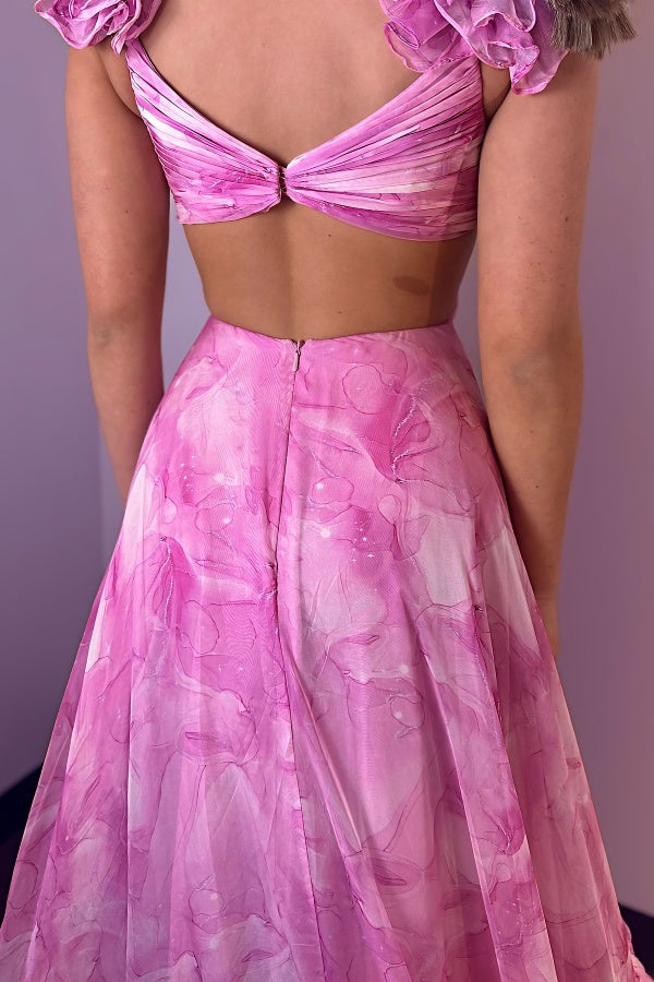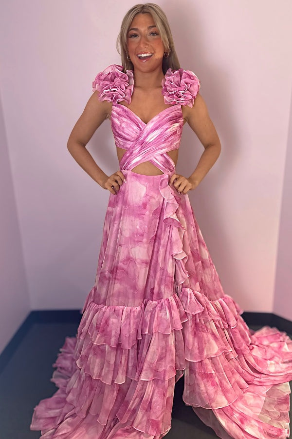 A-Line Sweetheart Straps Flower High Side Slit and Train Prom Dress WU1342