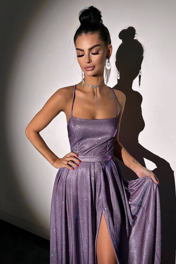Strapless Spaghetti Straps High Side Slit and Train Prom Dress WU1416