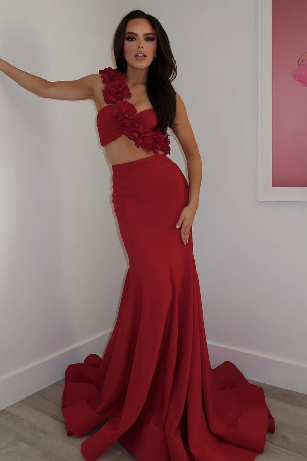 One Shoulder Two Piece Ruched Prom Dress WU1423