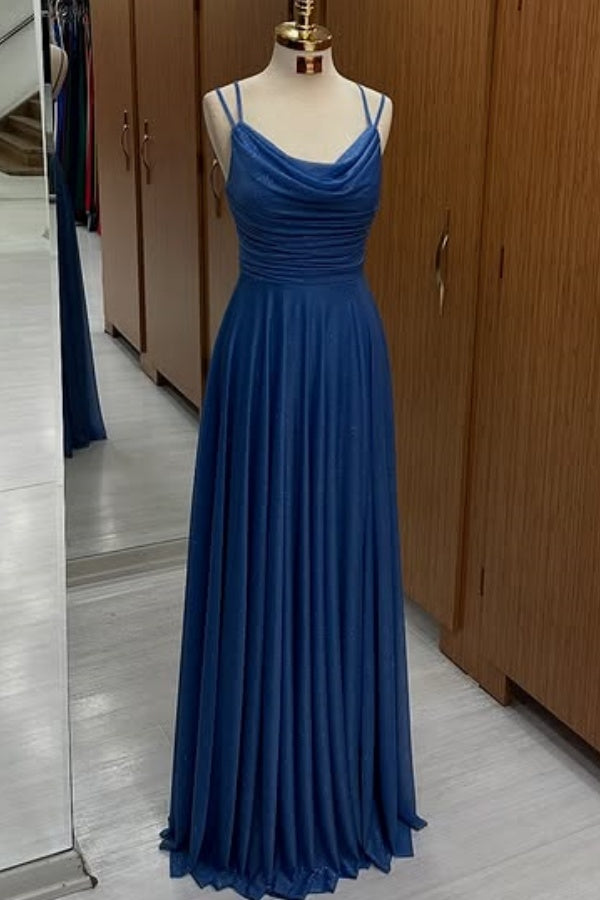 A-Line Round Neck Spaghetti Straps Pleated Prom Dress WU1507