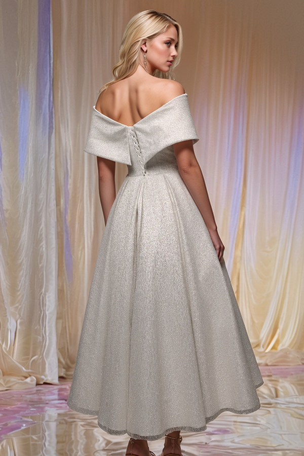 A-Line Lace Up Glitter Tulle Ankle Length Wedding Dress WW1038